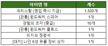 ※ 구매하신 상품이 지급되지 않을 경우, 게임을 완전히 종료 후 재접속 부탁드립니다.