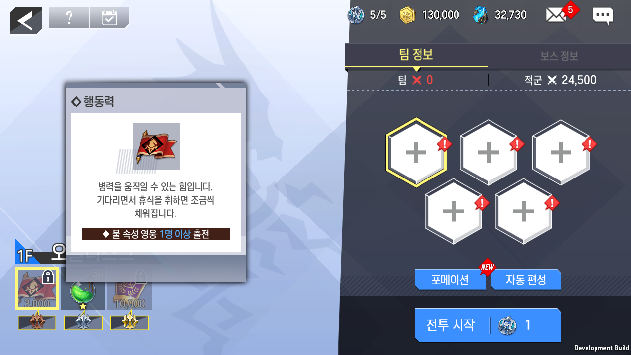 > 모든 속성에 따라 공격대가 자동 저장되며 속성별로 총 5개의 공격대가 저장됩니다.