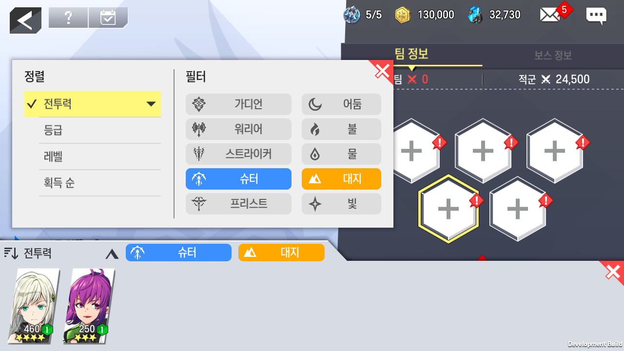 - 전투 준비 화면에서 영웅의 ‘클래스’ 및 ‘속성’ 등 필터 기능을 이용하여 정렬시킬 수 있게 됩니다.