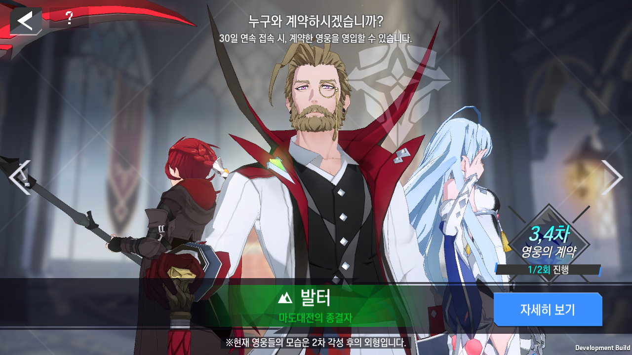 ( 예1 : 영웅 3종(A) > 계약 1회 완료 > 영웅 1명 영입 및 계약 2회 활성화 > 다른 영웅 3종(B)과 계약 진행 불가 )