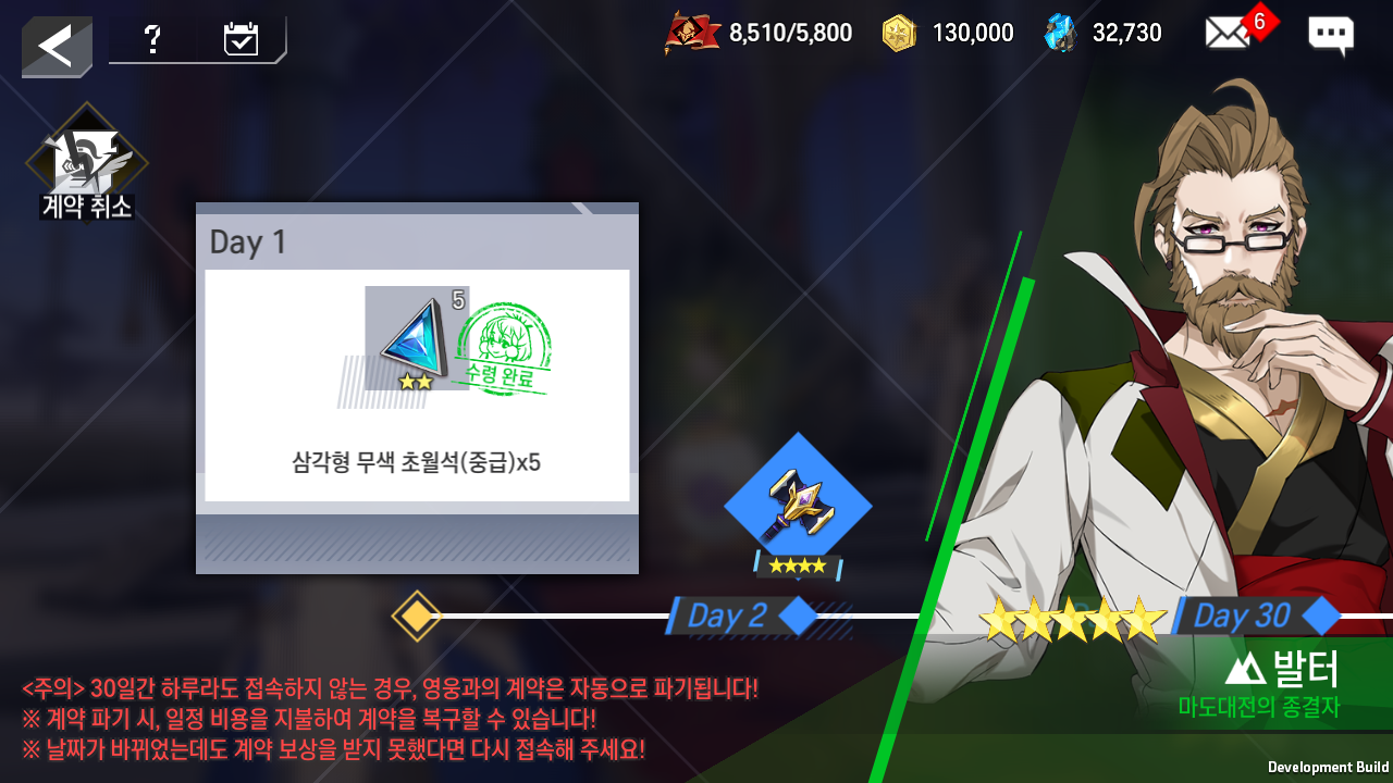 - 취소한 영웅은 [계약 복구]를 통해 진행된 계약 날짜에 비례한 크리스탈을 지불하고 계약을 복구할 수 있습니다.