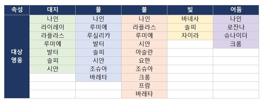 > 기존에 추가되지 않았던 그리고 [어둠] 슈나이더 및 [불] 아슬란을 포함하여 총 32명의 영웅을 추가합니다.