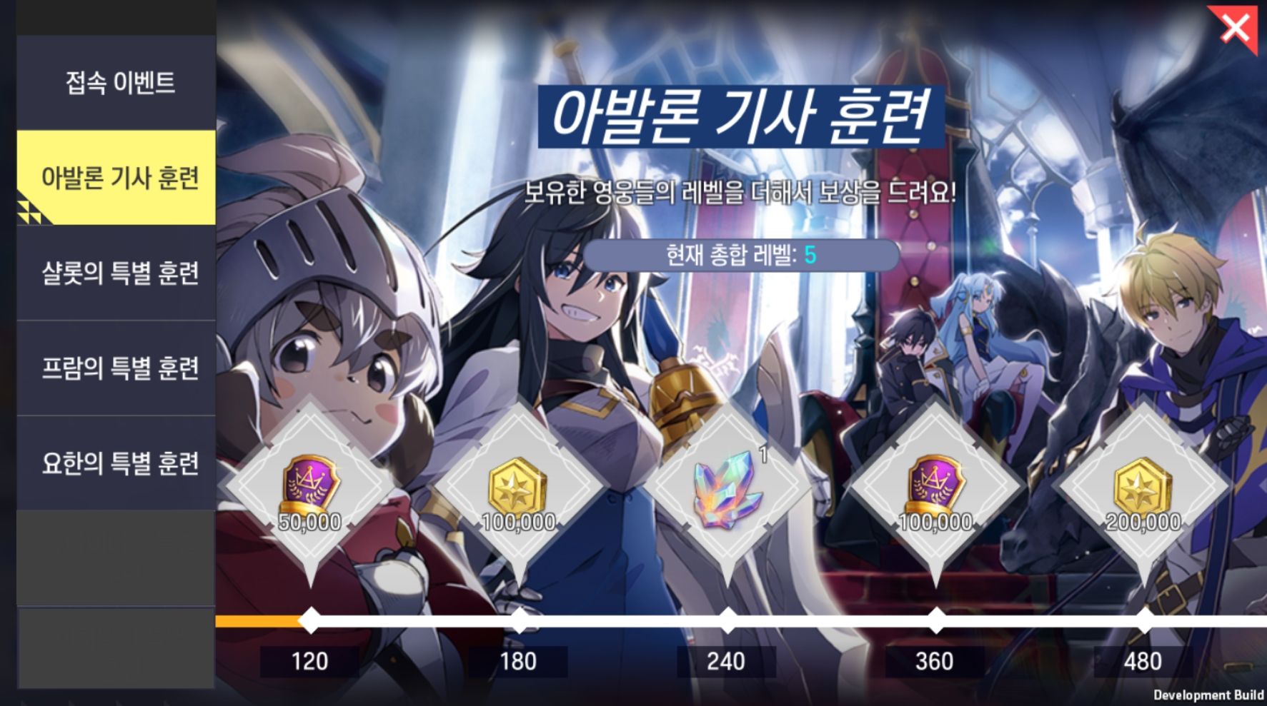 - 내용: 보유한 영웅들의 레벨을 더해서 보상을 드립니다.