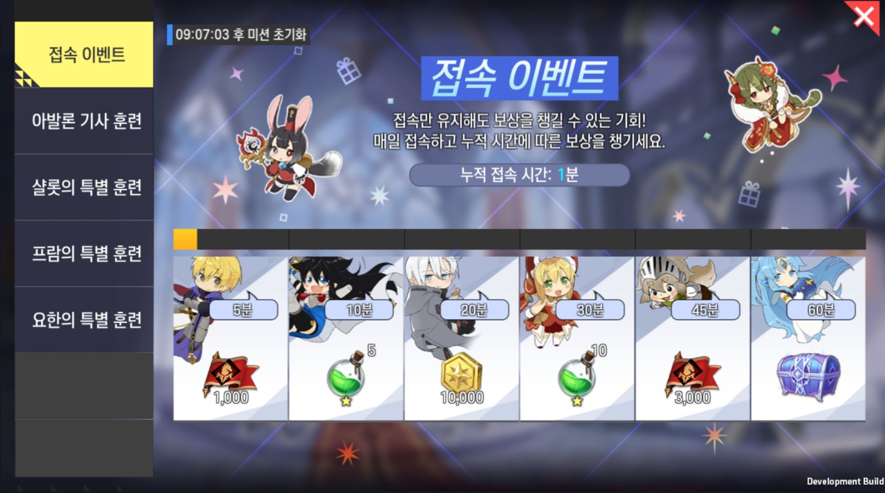 ※ 접속 시간과 보상은 매일 자정 (로컬 타임) 기준으로 초기화 됩니다.