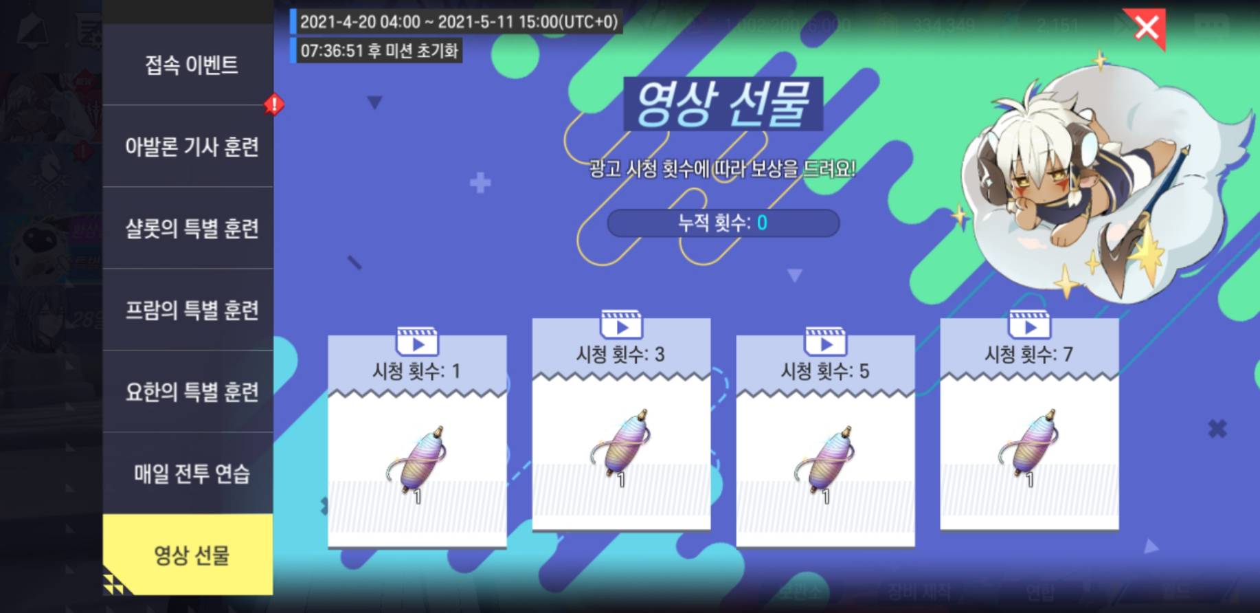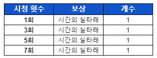 - 내용: 광고 시청 횟수에 따라 보상을 드려요!