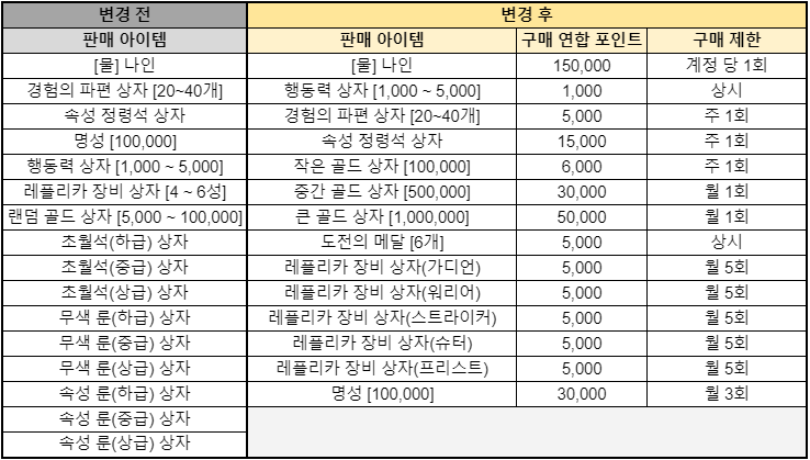 4) 연합 레이드 리뉴얼과 함께 연합 상점도 리뉴얼됩니다.