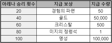 - 아레나에서 승리한 횟수만큼 보상이 지급됩니다!