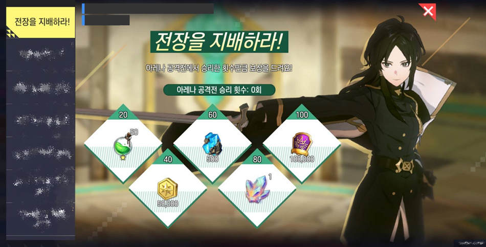 - 시나리오/전당/아레나/연합 레이드/오벨리스크 플레이 횟수에 따라 보상이 지급됩니다!
