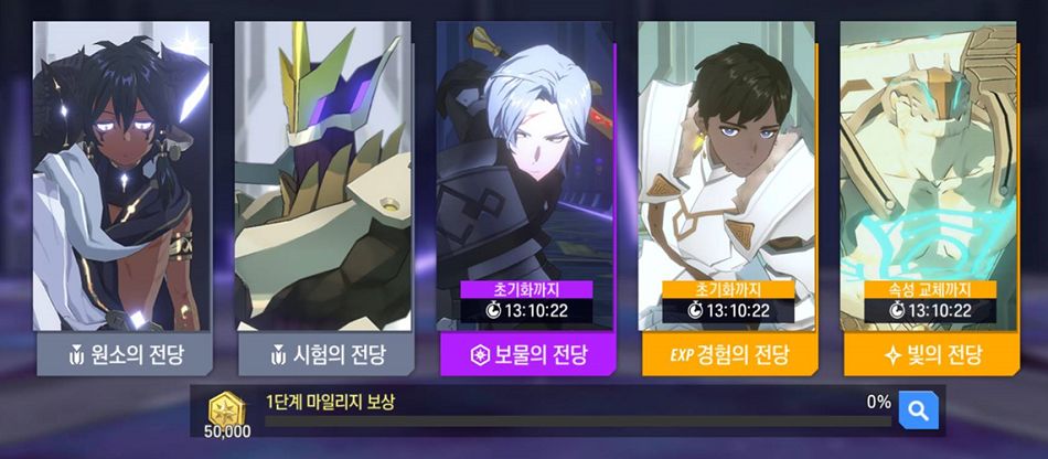 - 보물 / 경험의 전당은 초기화까지 남은 시간이 표기됩니다.