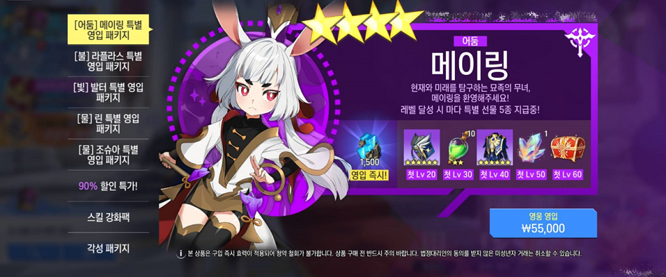 3) [어둠] 메이링은 신규 영웅 패키지 구매로 영입이 가능합니다.