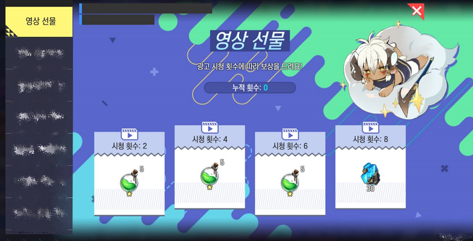 - 광고 시청 횟수에 따라 보상이 지급됩니다!