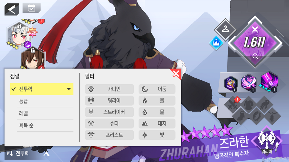- 전투 편성 화면과 동일한 필터 기능이 추가됩니다.
