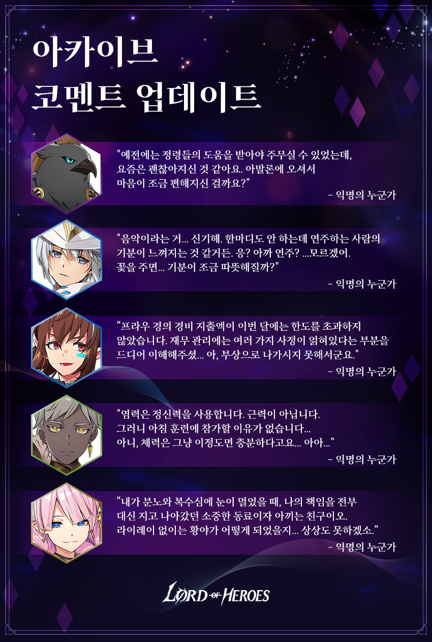 * 영웅 코멘트는 [아카이브 > 영웅] 에서 확인하실 수 있습니다.