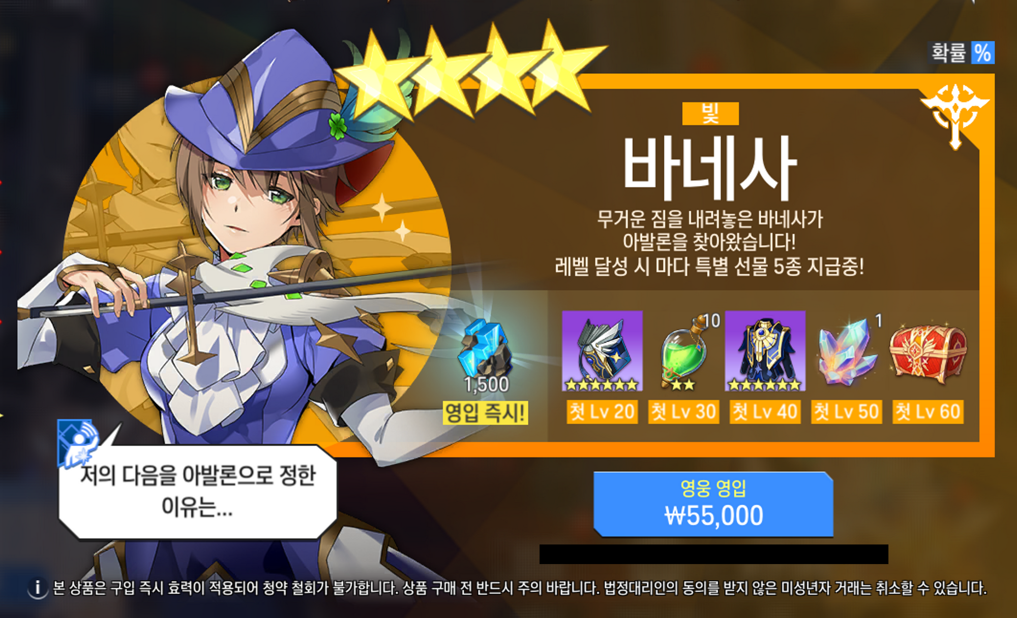 ※ 영웅 영입 패키지는 구입 즉시 효력이 적용되어 청약철회가 불가한 점 참고 부탁드립니다.