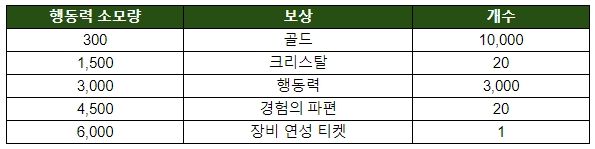- 매일 행동력 사용량에 따라 보상을 드립니다!