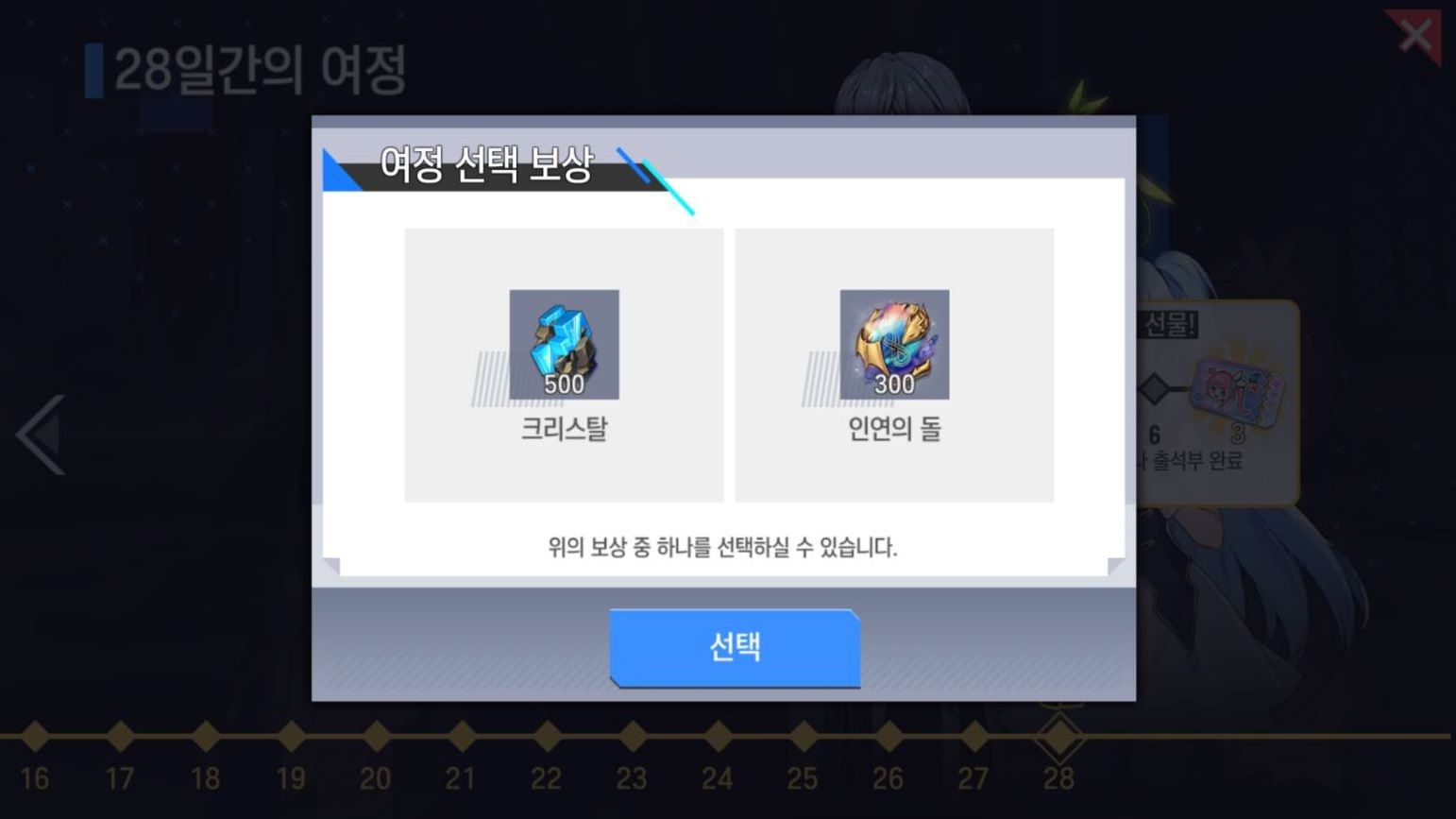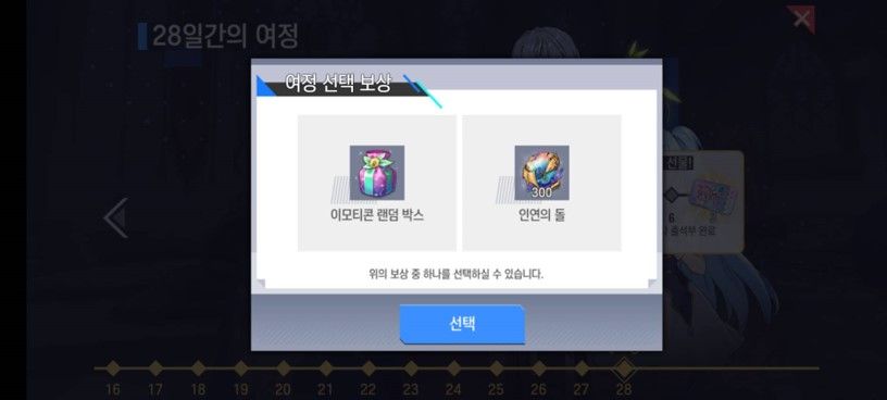 : 변경 후 28일차 보상 - 이모티콘 랜덤 박스 OR 인연의 돌 300개 (택 1)