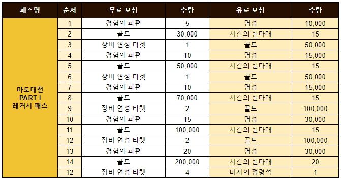 - 상품: 마도대전 PART I 레거시 패스