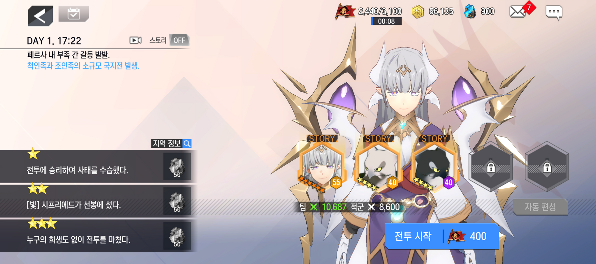 - 일부 사건에서는 지정된 영웅으로만 전투가 진행되며, 추가 영웅의 편성이 제한될 수 있습니다.