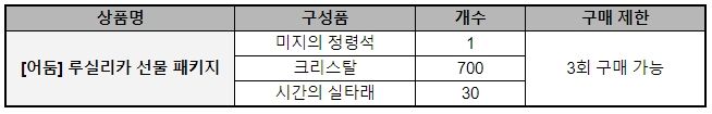 - 신규 영웅 패키지 [어둠] 루실리카 영입 후 구매할 수 있는 상품입니다.