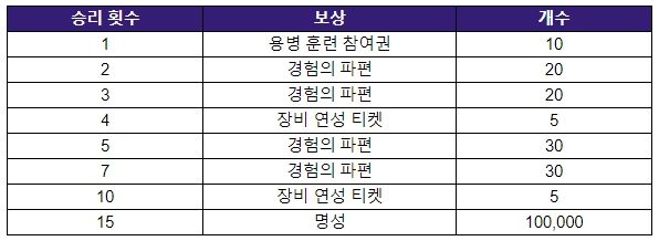 - 이벤트 기간 동안 다케온 용병 훈련장에서 아슬란에게 승리한 횟수에 따라 보상을 드립니다!