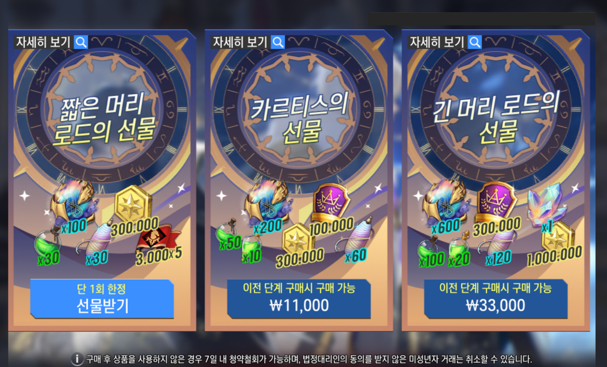※ 영웅 영입 패키지는 구입 즉시 효력이 적용되어 청약철회가 불가한 점 참고 부탁드립니다.