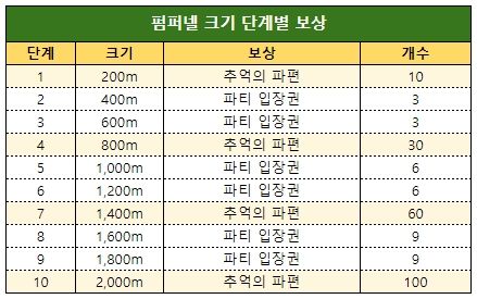 1) 펌퍼넬 크기에 따른 단계별 보상