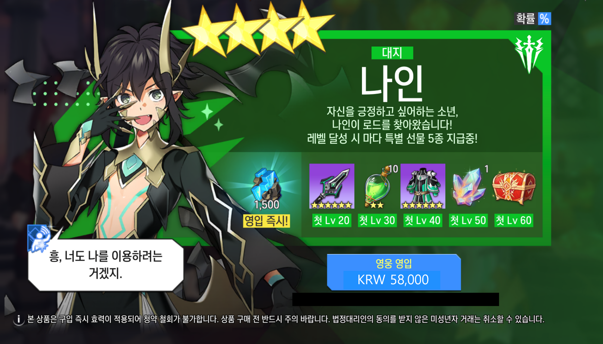 ※ 영웅 영입 패키지는 구입 즉시 효력이 적용되어 청약철회가 불가한 점 참고 부탁드립니다.