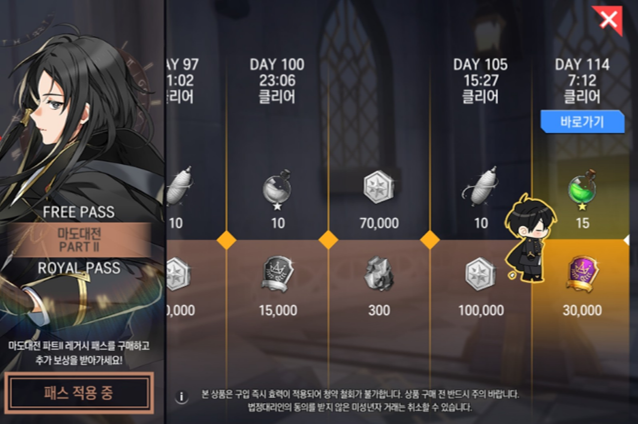 2. 마도대전 파트2 레거시 패스 보상 중, DAY 102 15:02의 텍스트 표기가 누락된 부분이 수정됩니다.