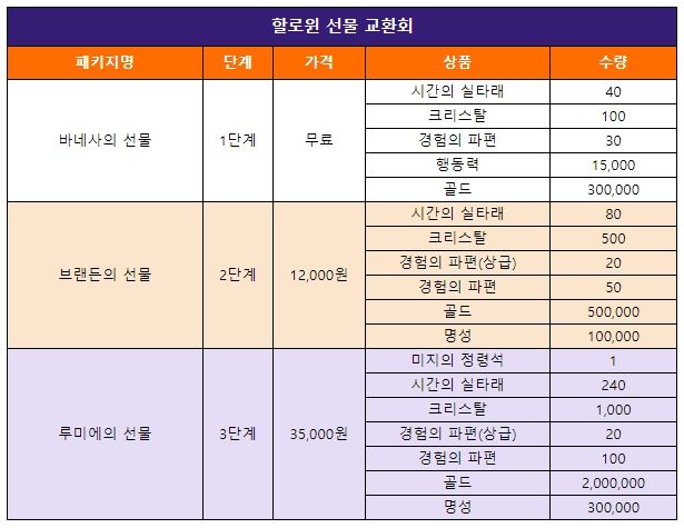 - 무료 상품 1종을 포함한 할로윈 선물 교환회 패키지가 새롭게 추가됩니다.