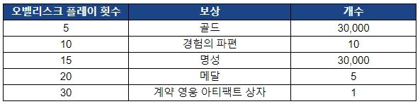 - 이벤트 기간동안 오벨리스크 플레이 횟수에 따라 보상을 드립니다!