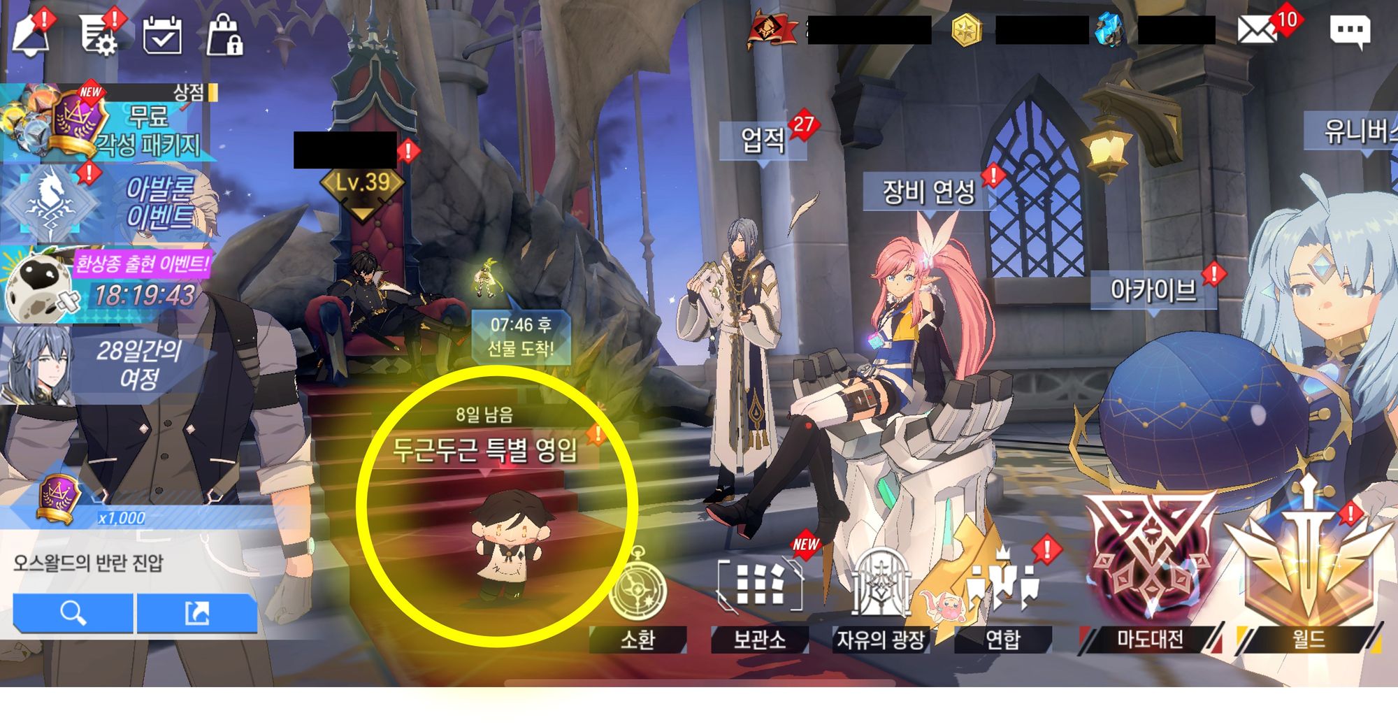 ※ [두근두근 특별 영입] 화면에 진입해야만 해당 이벤트의 출석으로 인정됩니다. 또한, 출석 이후 연합을 이동하여도 1일 최초 1회의 출석만 인정됩니다.
