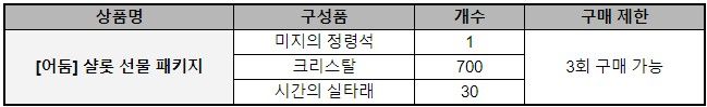 - 3회 구매 가능한 상품이며, 3회 모두 구매 시 특별한 스타일 아이템이 제공됩니다.