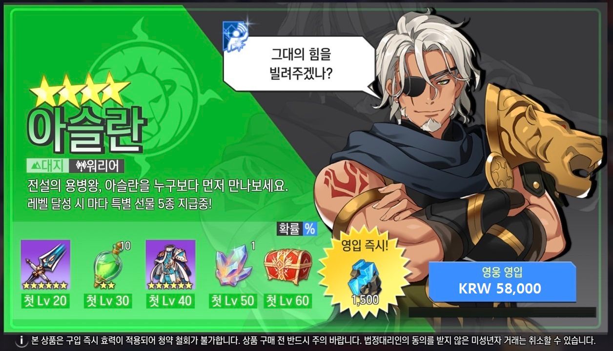 2. 유료 캐릭터 패키지: [대지] 아슬란 (워리어) 복각 판매