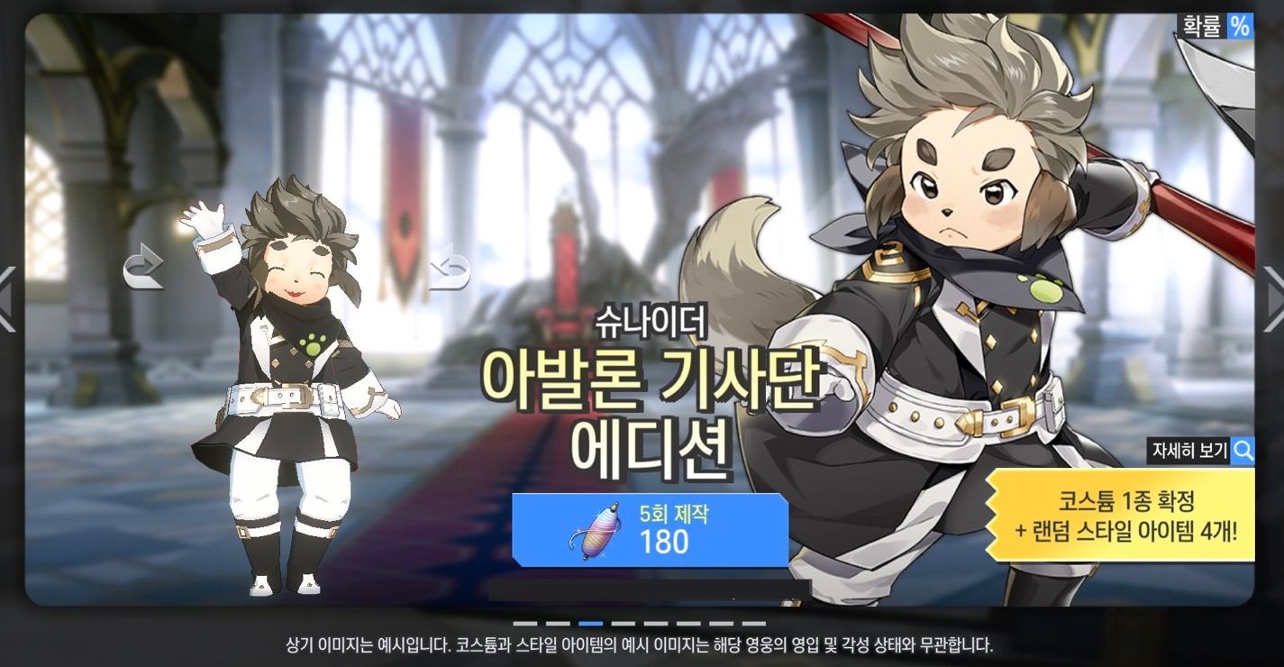 - 의상실/마일리지 상점에 슈나이더의 [아발론 기사단 에디션] 1종이 각각 추가됩니다.