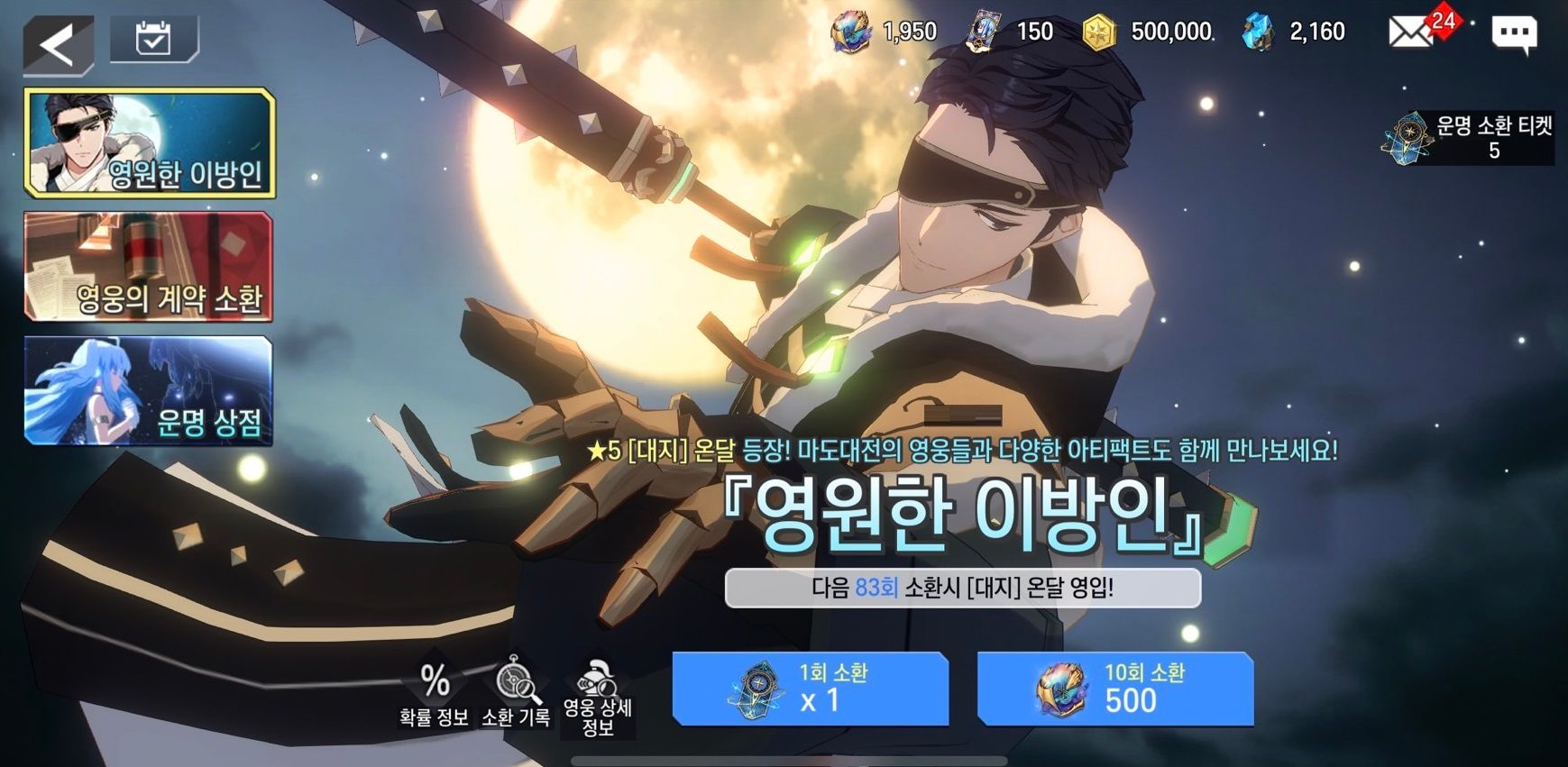 ※ ‘영원한 이방인’은 운명 소환 상품으로, 이후 운명 소환 상품 추가 시 진행한 소환 누적 횟수가 공유되며, 다른 소환 상품과는 공유되지 않습니다.