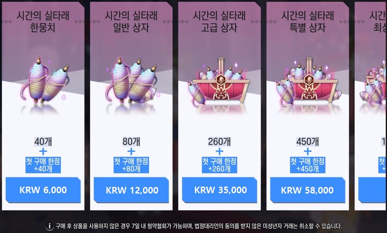 4. 시간의 실타래 첫 구매 한정 혜택 초기화