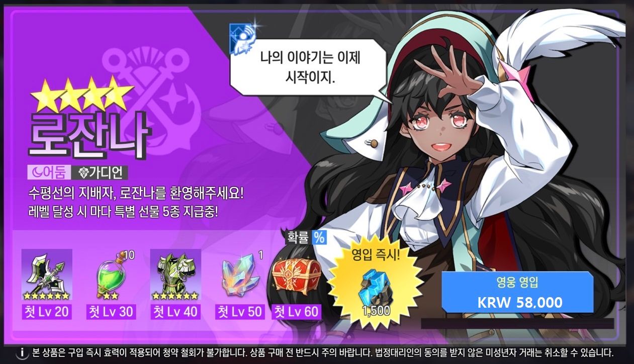 1. 유료 캐릭터 패키지: [어둠] 로잔나 (가디언) 복각 판매