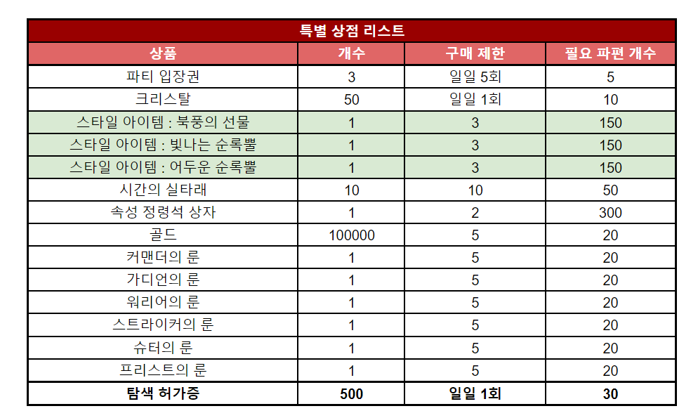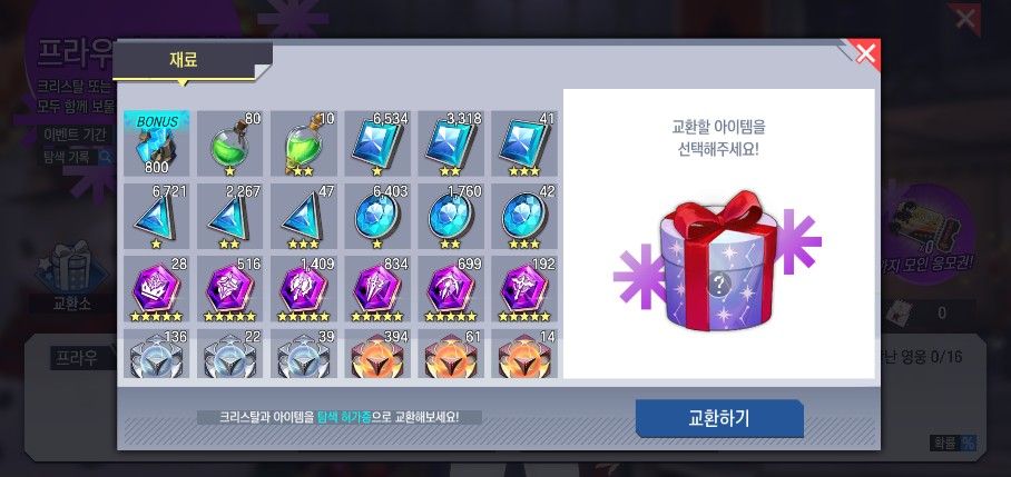 ※ 이벤트 재화로 교환이 가능한 재료 아이템은 이벤트 마다 달라질 수 있습니다.
