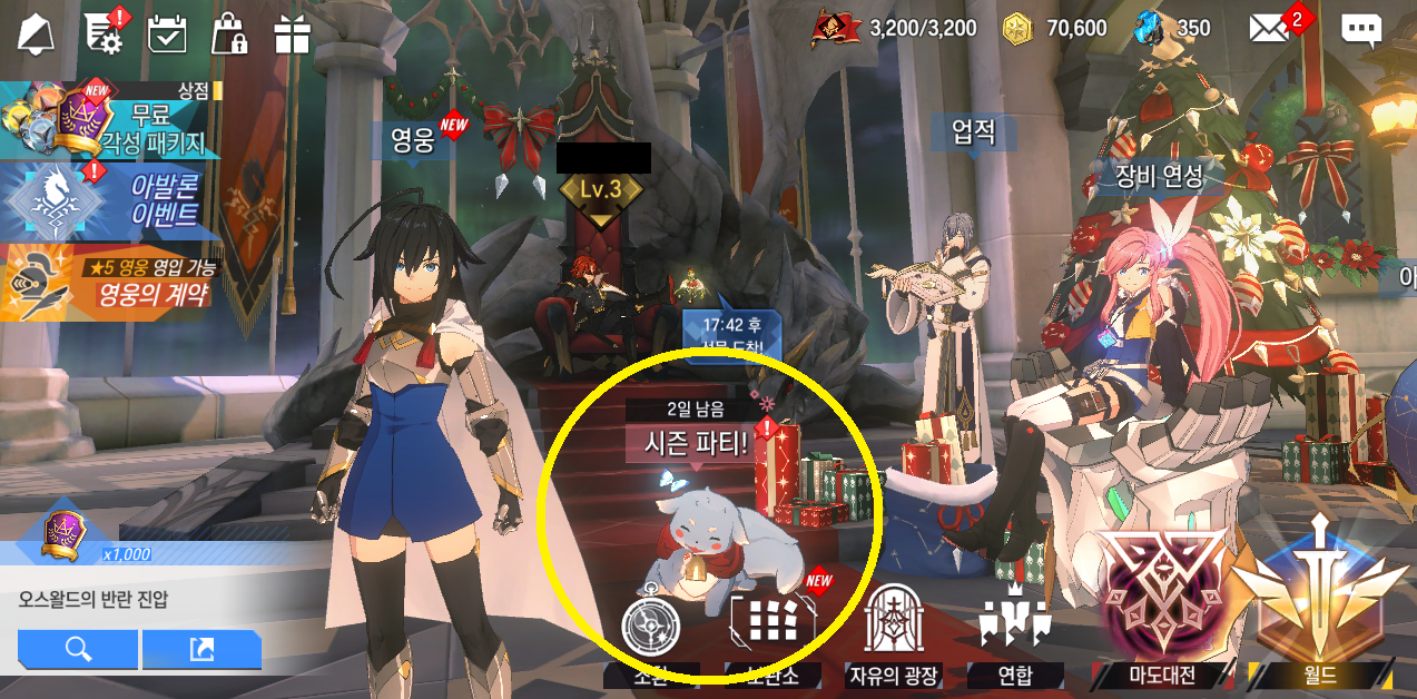 - ‘파티 시작!’ 버튼을 눌러 홀리데이 파티 던전에 입장합니다.