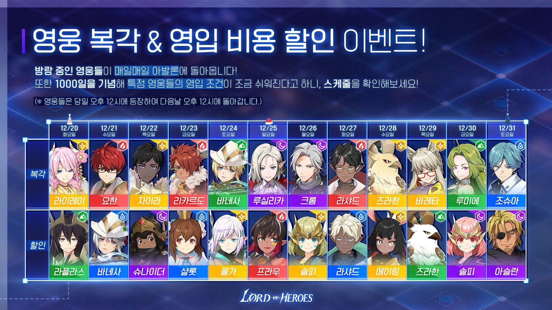 12월 20일(화) 로드 오브 히어로즈 서비스 1000일을 맞이하여