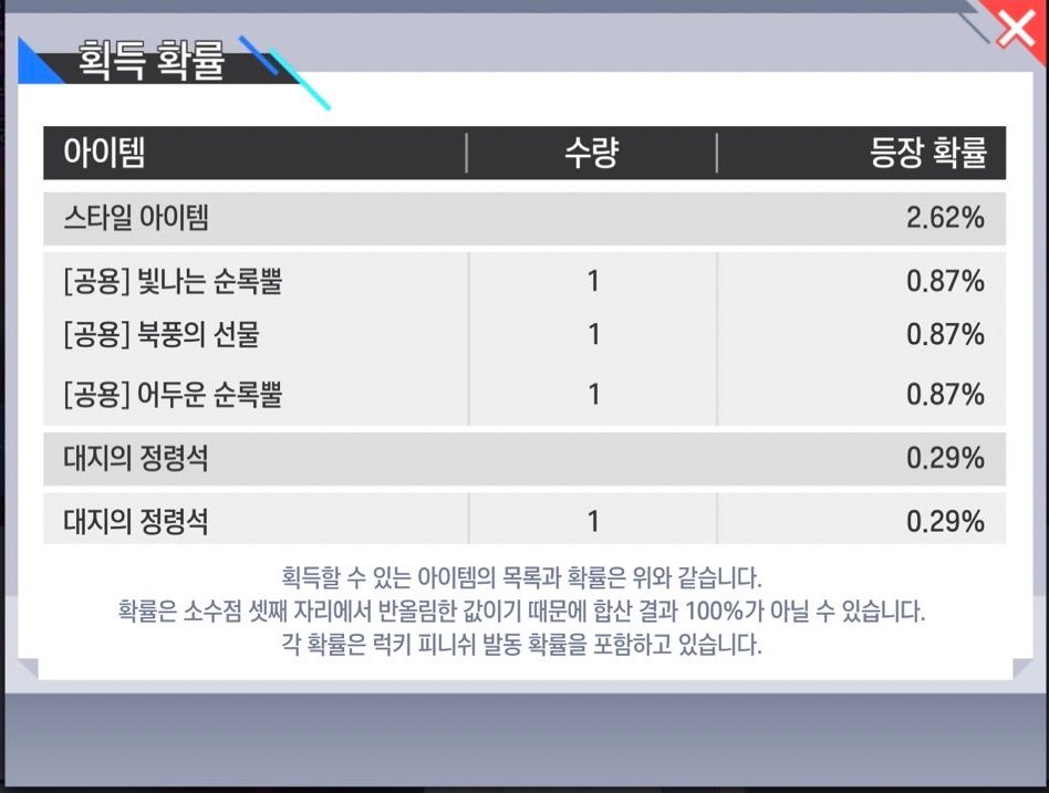 - 다양한 보물이 존재하며 획득 가능한 보물의 확률은 이벤트 화면 내 [확률 정보]에서 확인할 수 있습니다.