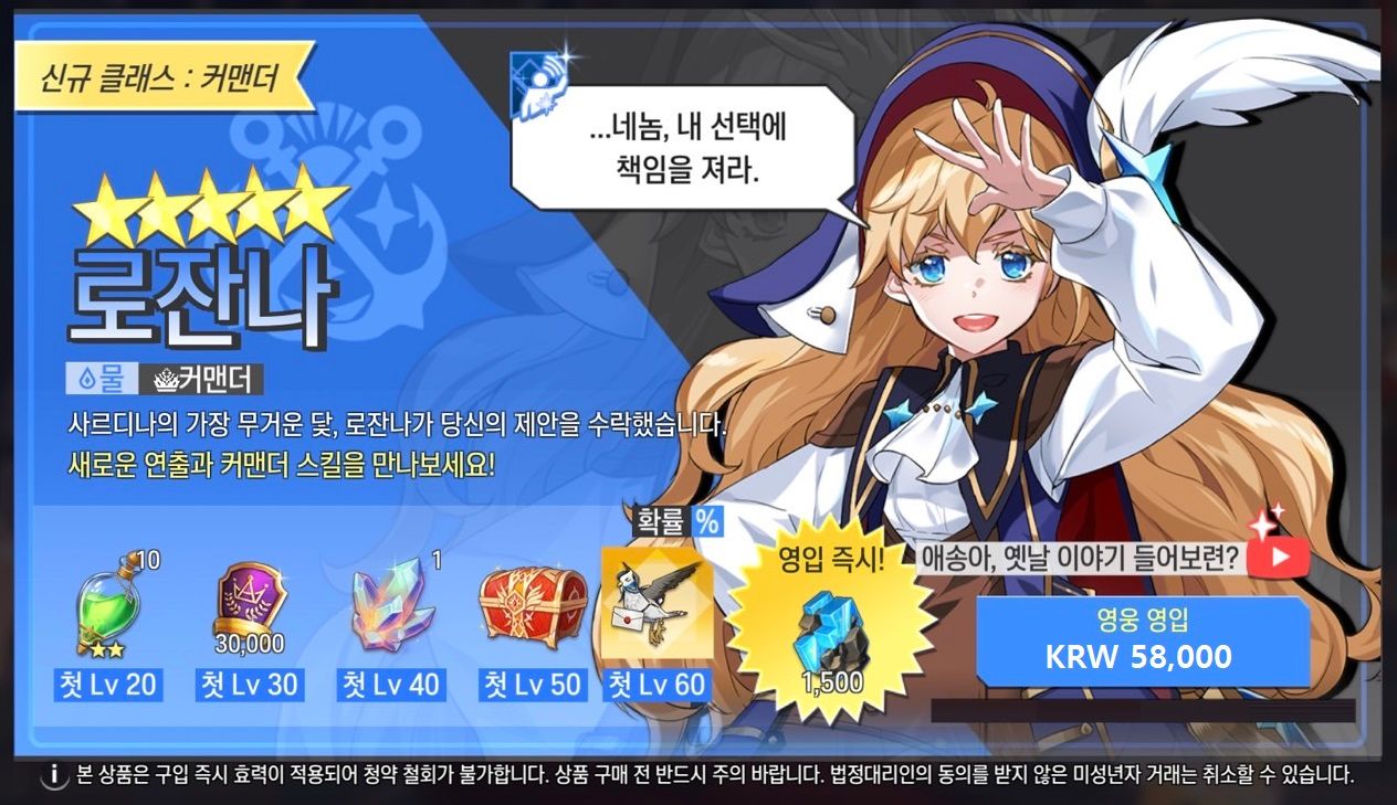 2. 유료 캐릭터 패키지: [물] 로잔나 (커맨더) 복각 판매