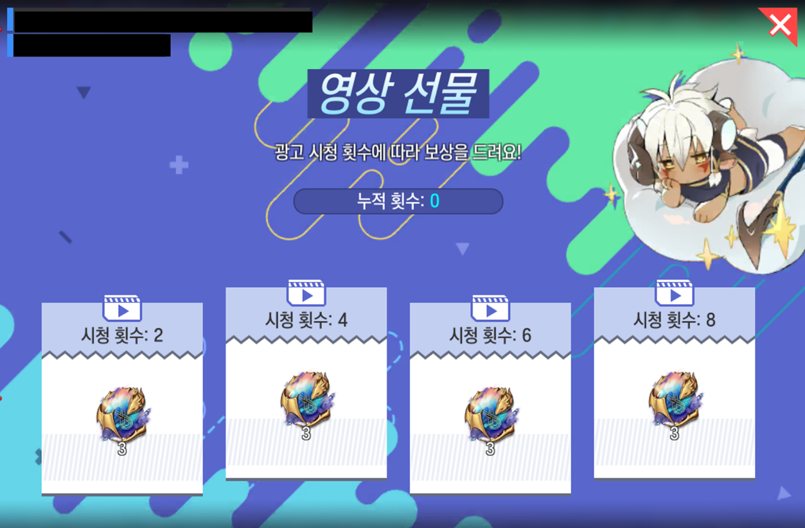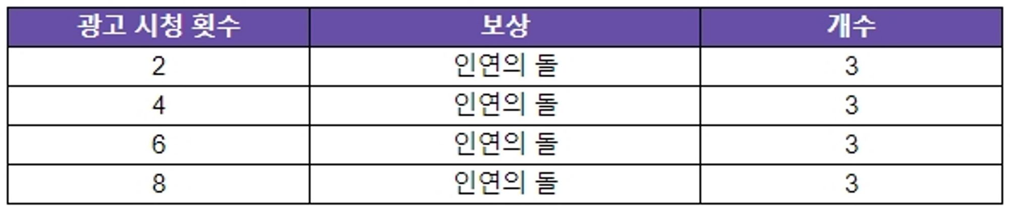 - 광고 시청 횟수에 따라 보상을 드려요!