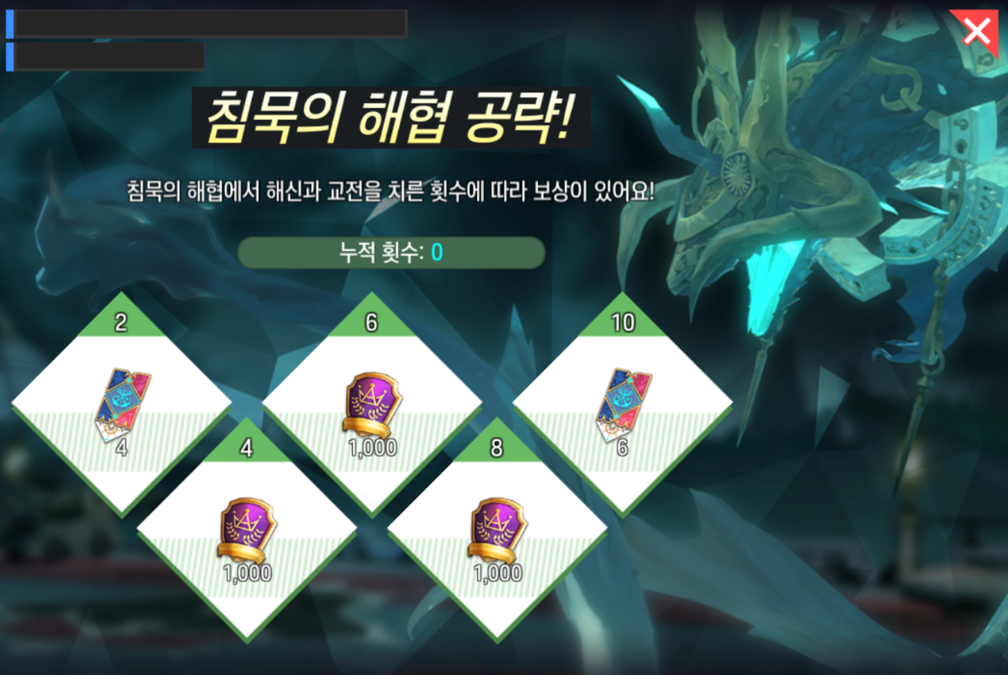 - 이벤트 기간 동안 침묵의 해협에서 해신과 전투한 횟수에 따라 보상을 드립니다!
