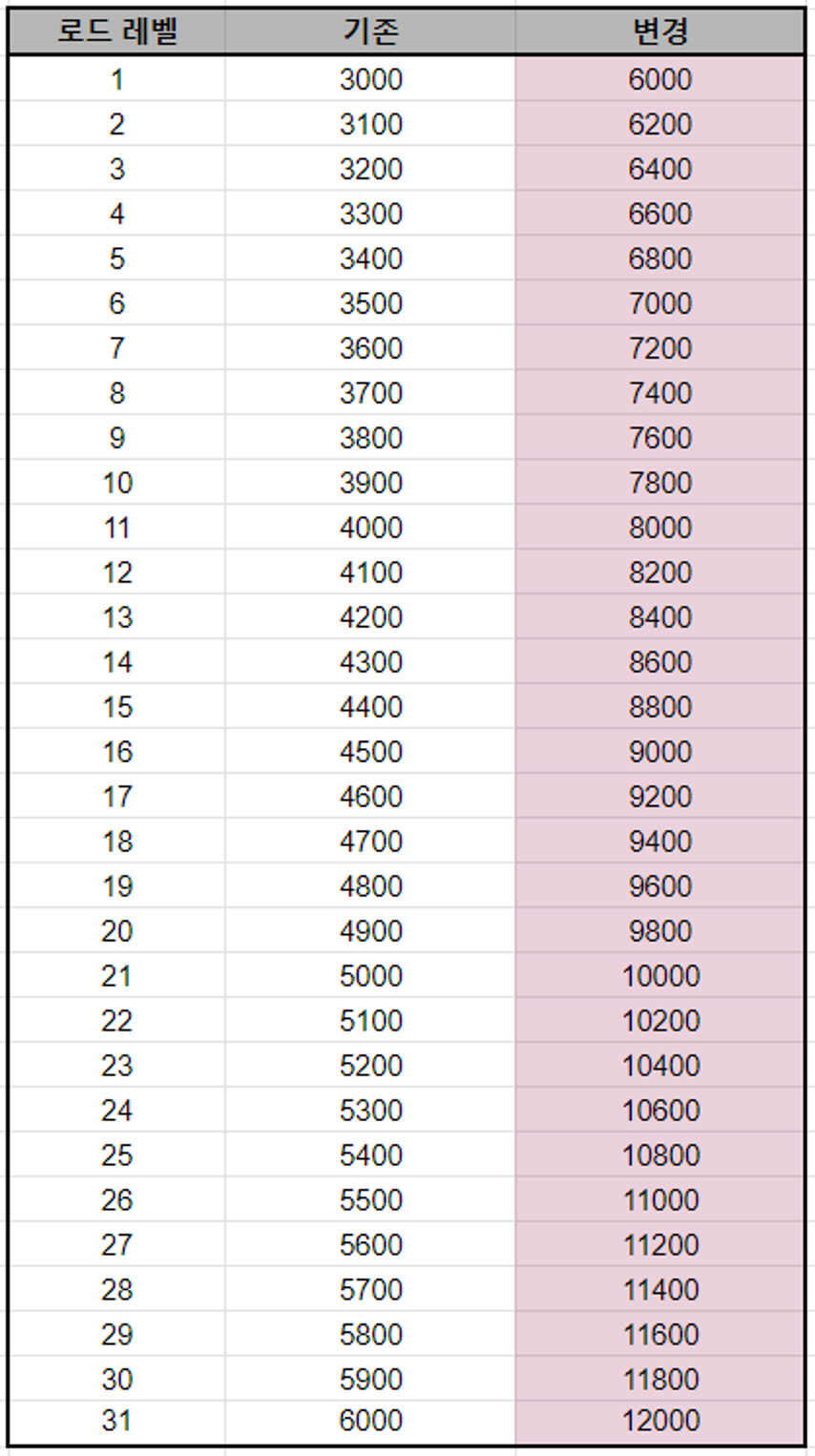 - 로드 레벨에 따른 행동력 최대치가 [6000>12000]으로 변경됩니다.