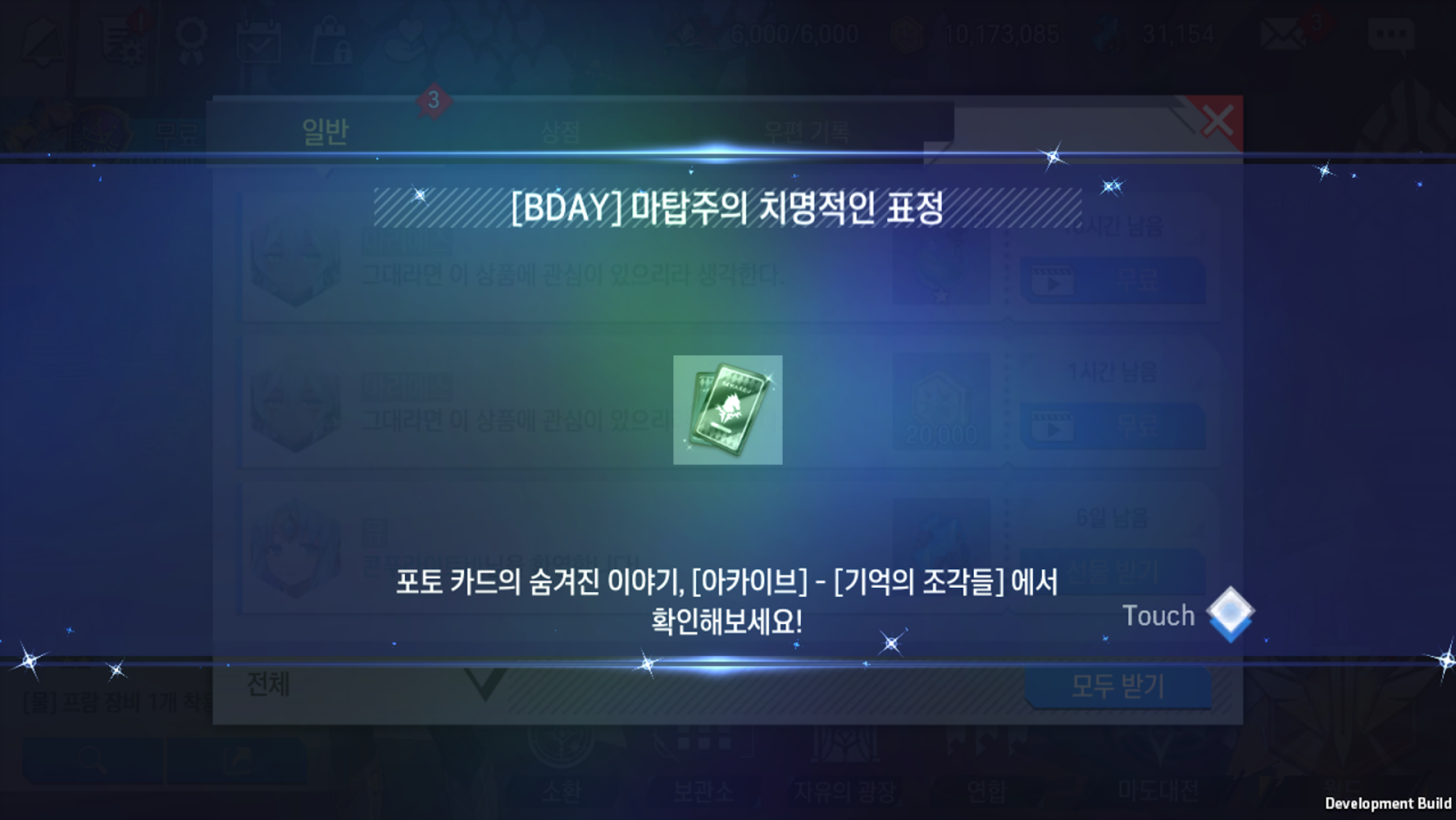 - 획득한 포토 카드는 [아카이브]> [기억의 조각들]에서 확인할 수 있습니다.