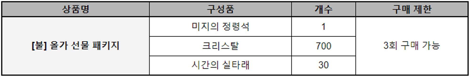 - 3회 구매 가능한 상품이며, 3회 모두 구매 시 특별한 스타일 아이템이 제공됩니다.