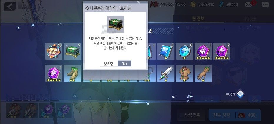 - 시나리오 지역의 반복 전투를 통해 확률에 따라 지역 특산품을 획득할 수 있습니다.