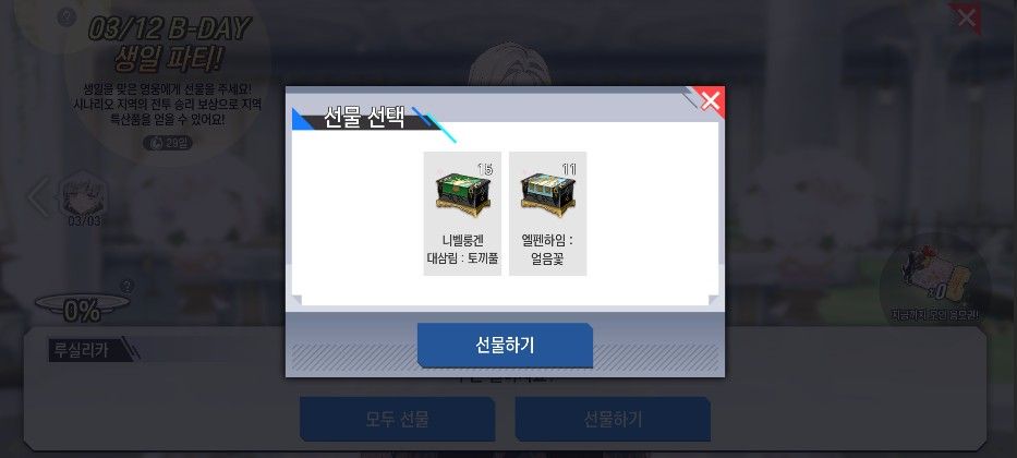 - 특산품을 영웅에게 선물하면 확률에 따라 [생일 굿즈 응모권]을 획득합니다.