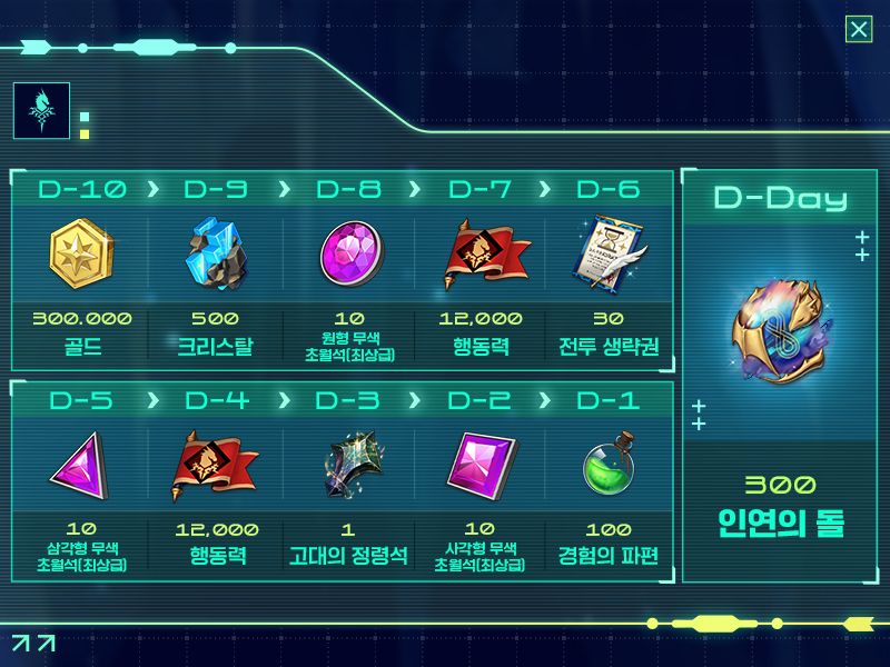 - 일자별로 영웅의 축하 메시지와 선물을 획득할 수 있습니다.